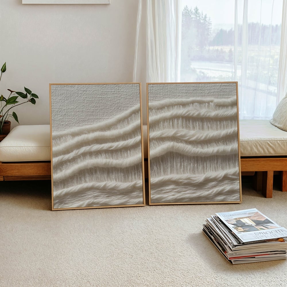 יצירת אמנות ממוסגרת במסגרת צפה אלגנטית, המעניקה ליצירה מראה מרחף ויוקרתי