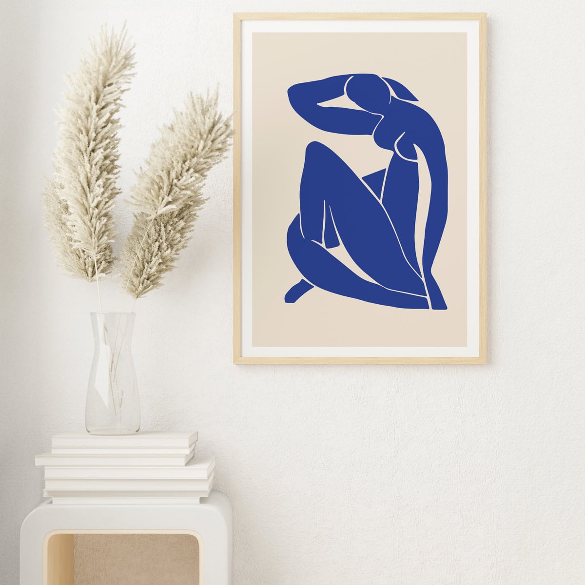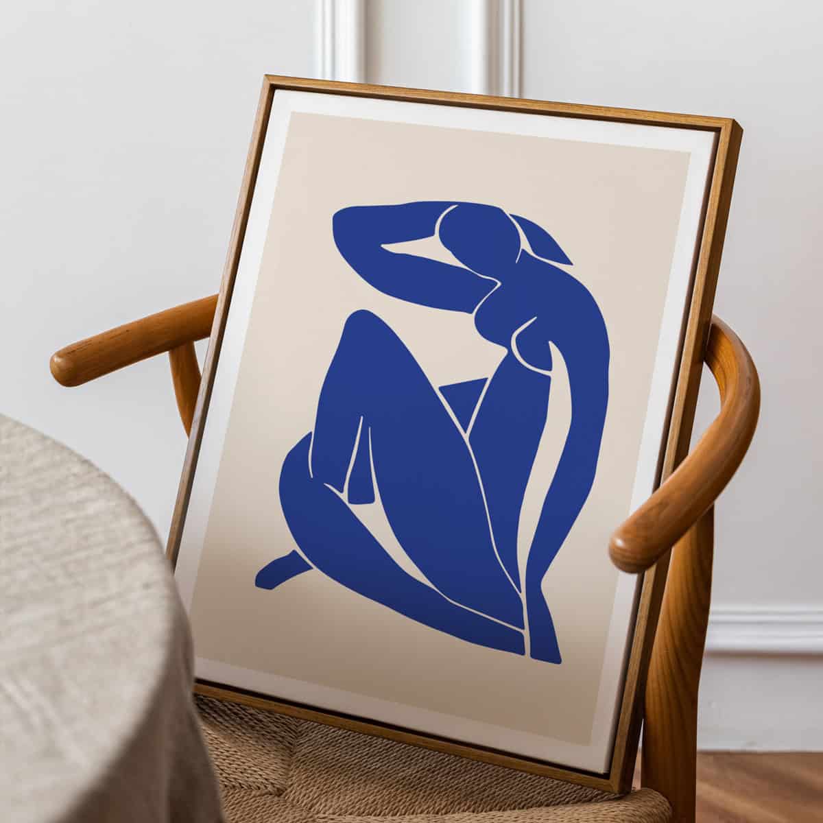 יצירת אמנות ממוסגרת במסגרת צפה אלגנטית, המעניקה ליצירה מראה מרחף ויוקרתי