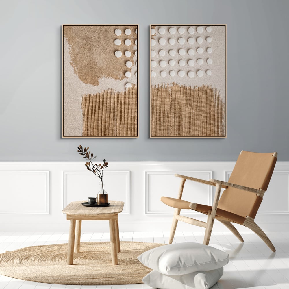 יצירת אמנות ממוסגרת במסגרת צפה אלגנטית, המעניקה ליצירה מראה מרחף ויוקרתי