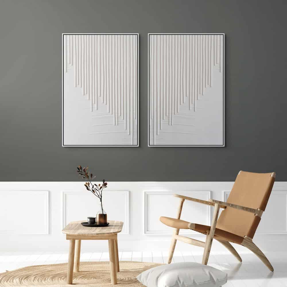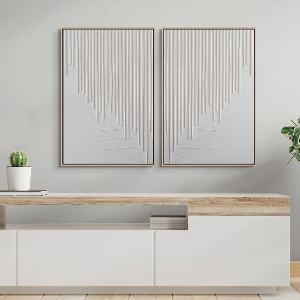 יצירת אמנות ממוסגרת במסגרת צפה אלגנטית, המעניקה ליצירה מראה מרחף ויוקרתי