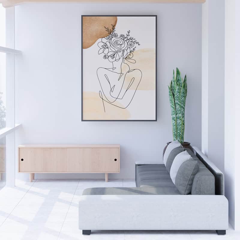 יצירת אמנות ממוסגרת במסגרת צפה אלגנטית, המעניקה ליצירה מראה מרחף ויוקרתי