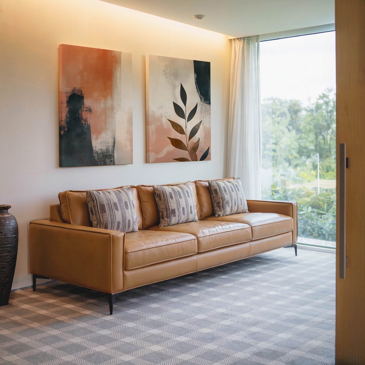 יצירת אמנות ממוסגרת במסגרת צפה אלגנטית, המעניקה ליצירה מראה מרחף ויוקרתי