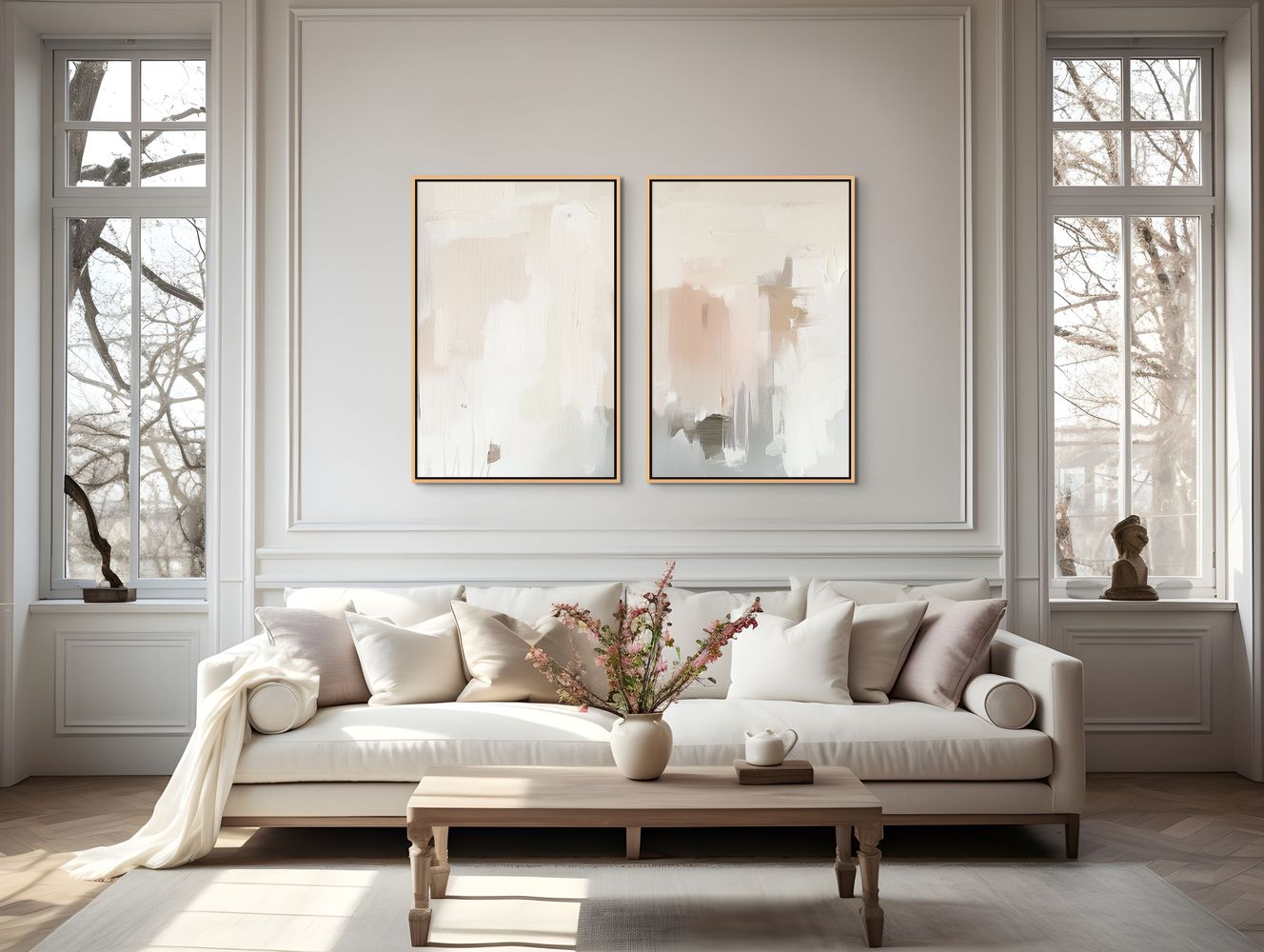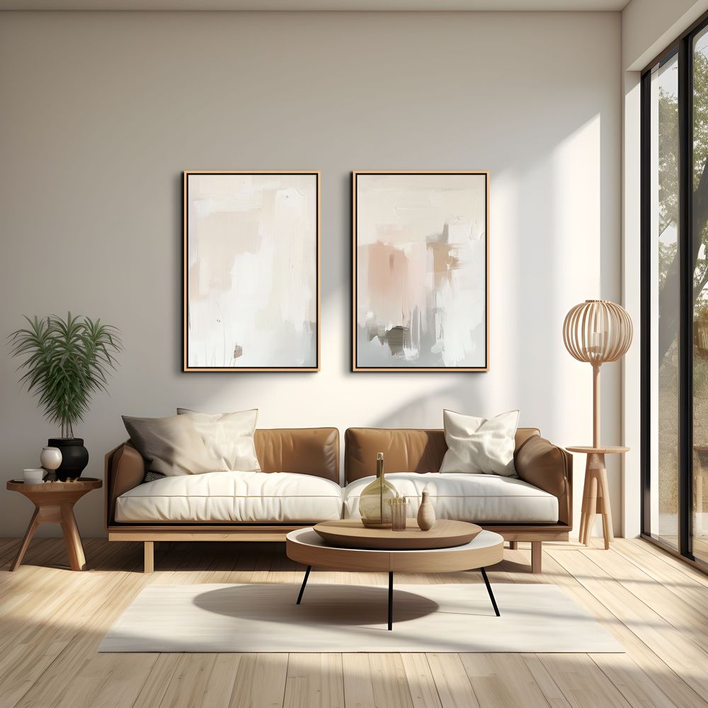 יצירת אמנות ממוסגרת במסגרת צפה אלגנטית, המעניקה ליצירה מראה מרחף ויוקרתי