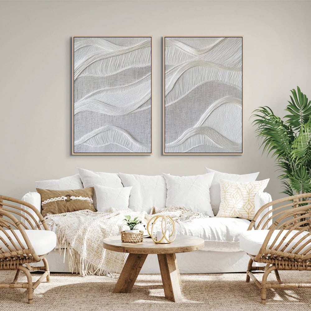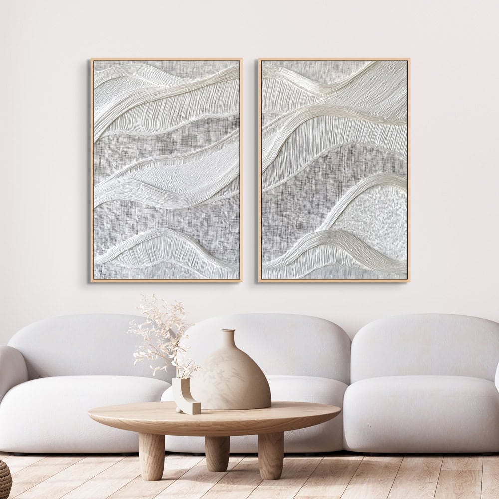 יצירת אמנות ממוסגרת במסגרת צפה אלגנטית, המעניקה ליצירה מראה מרחף ויוקרתי