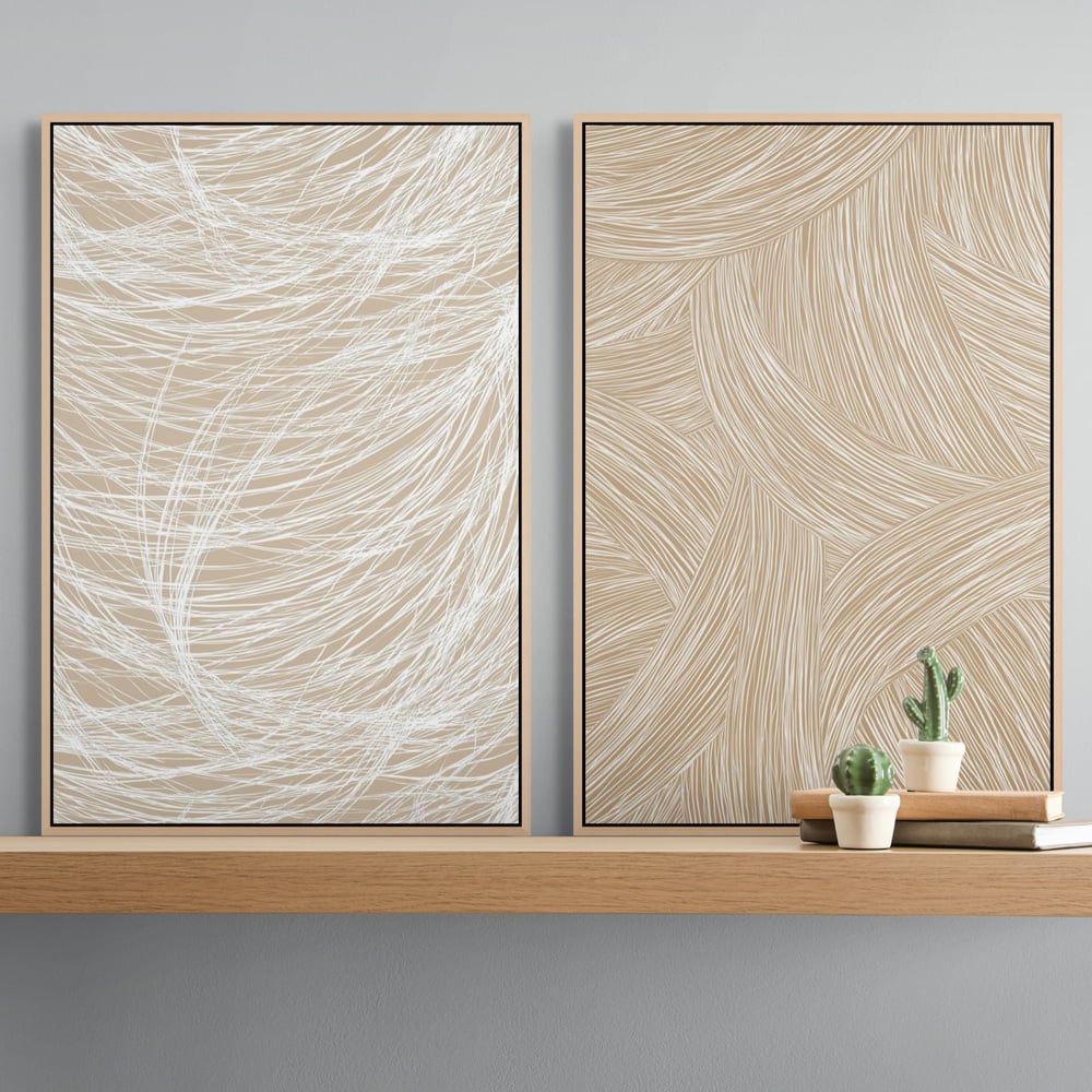 יצירת אמנות ממוסגרת במסגרת צפה אלגנטית, המעניקה ליצירה מראה מרחף ויוקרתי