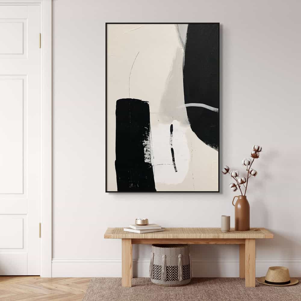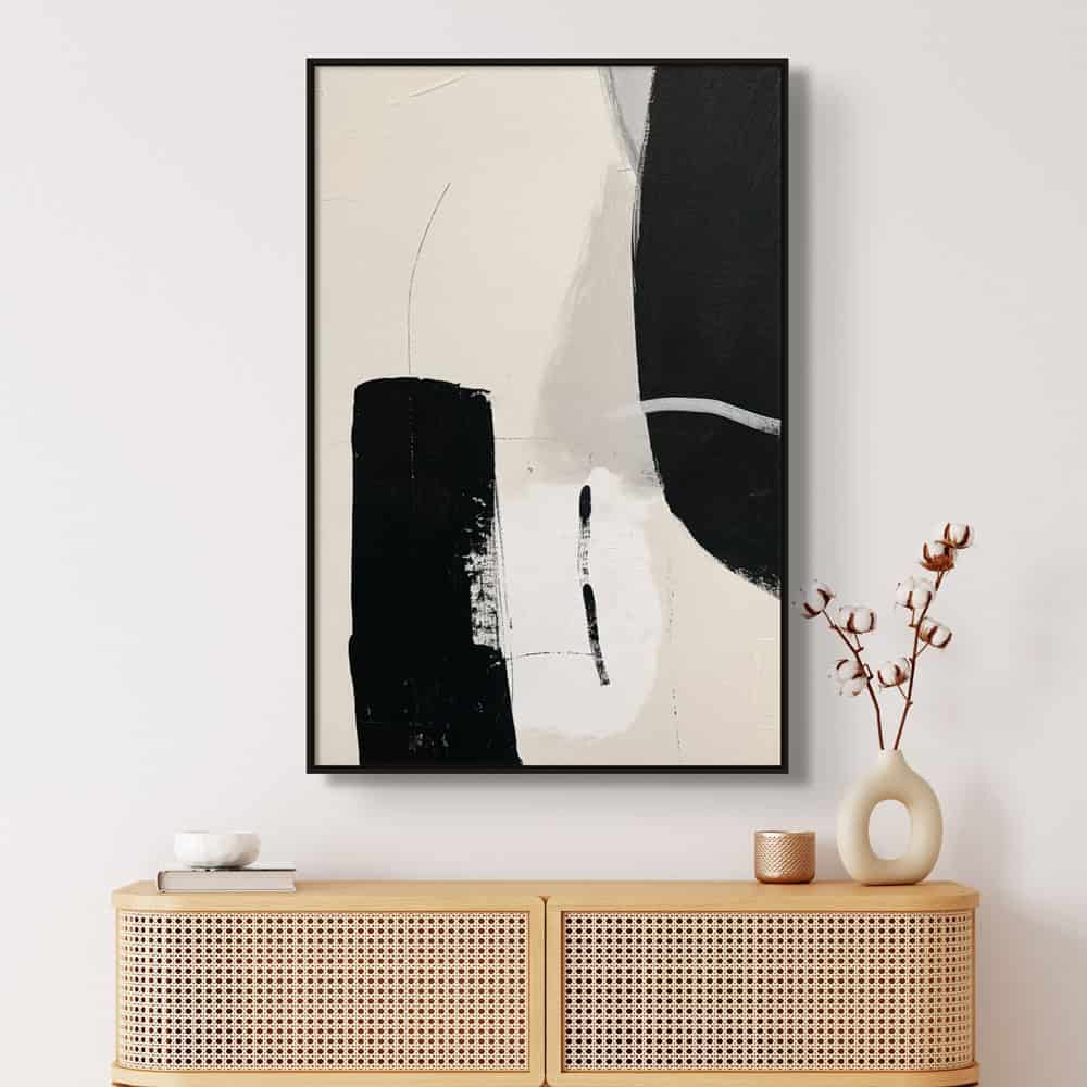 יצירת אמנות ממוסגרת במסגרת צפה אלגנטית, המעניקה ליצירה מראה מרחף ויוקרתי