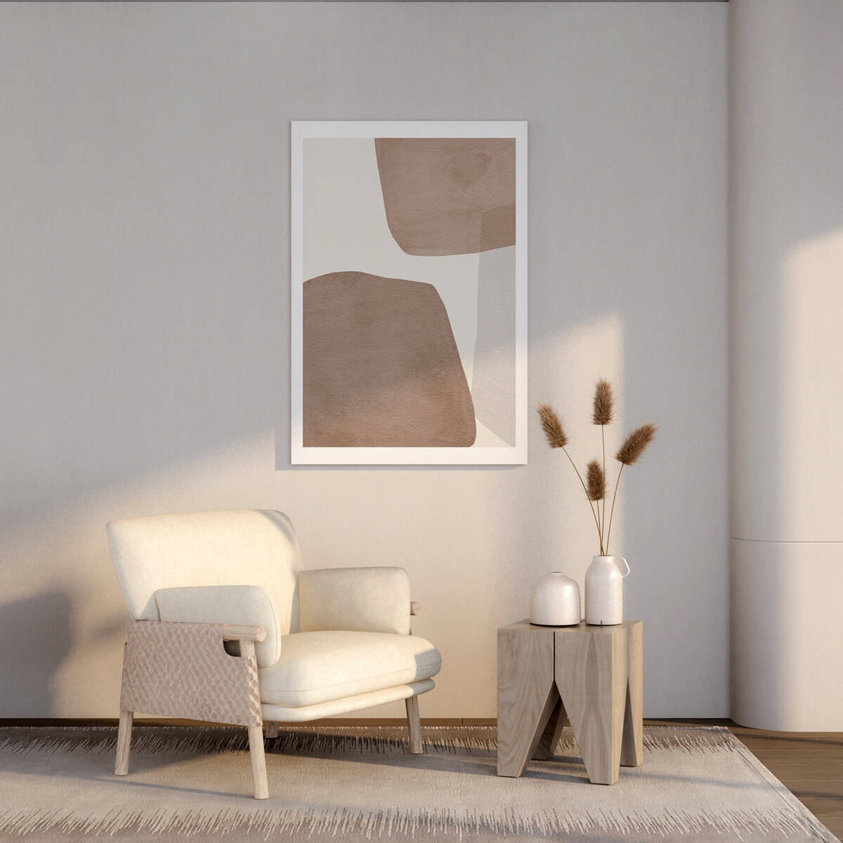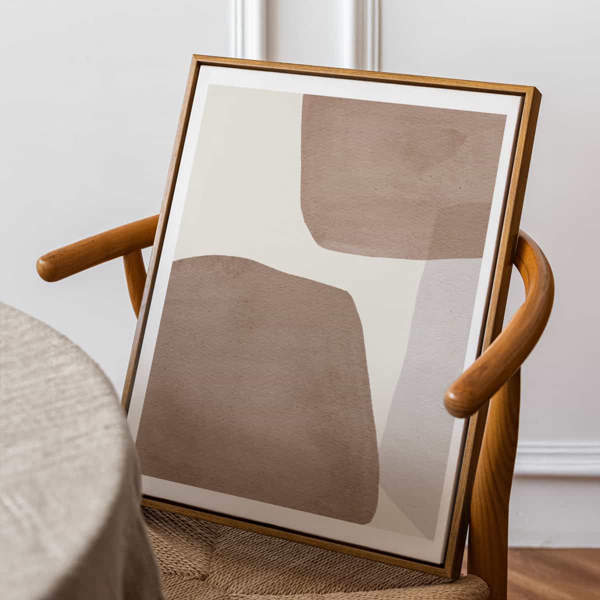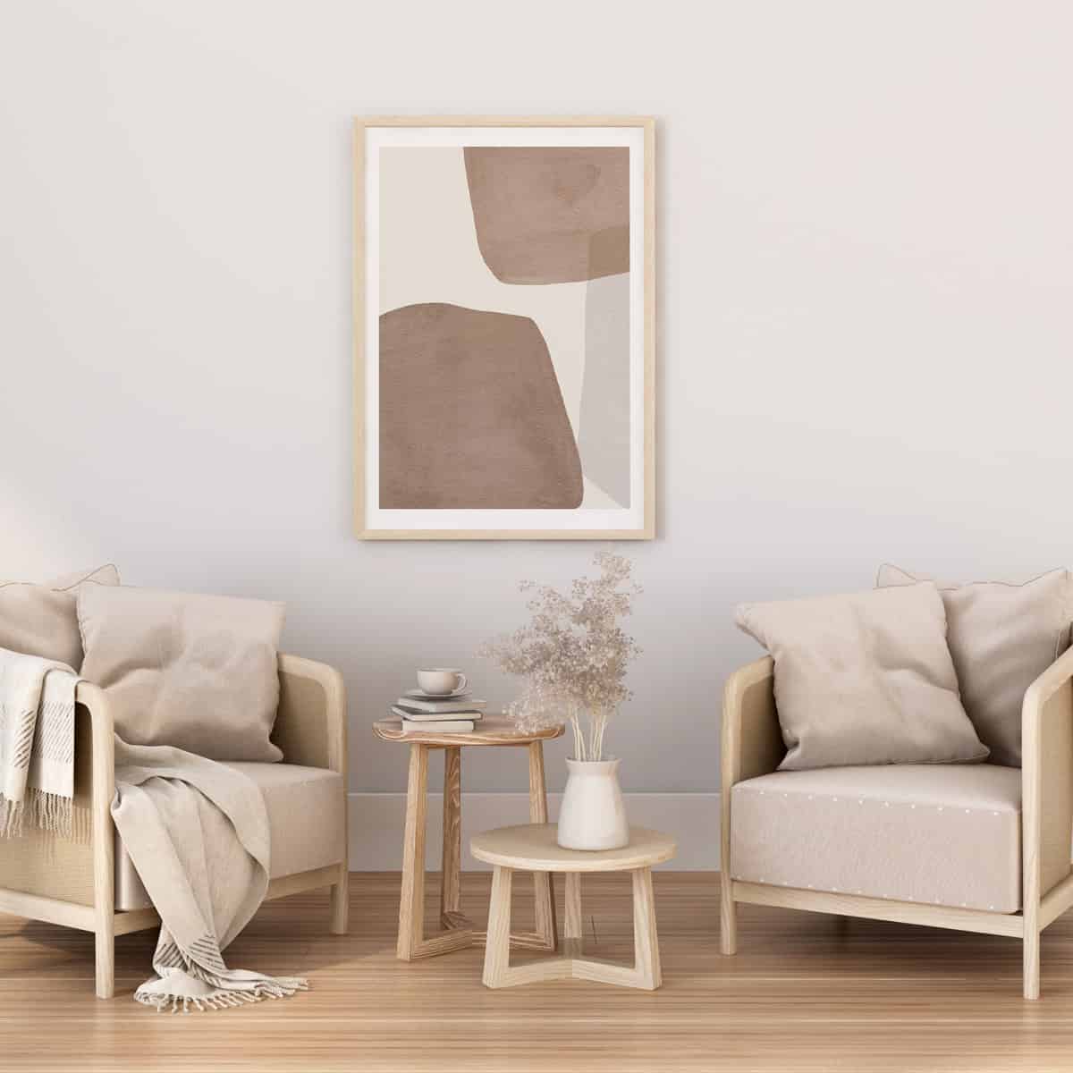 יצירת אמנות ממוסגרת במסגרת צפה אלגנטית, המעניקה ליצירה מראה מרחף ויוקרתי