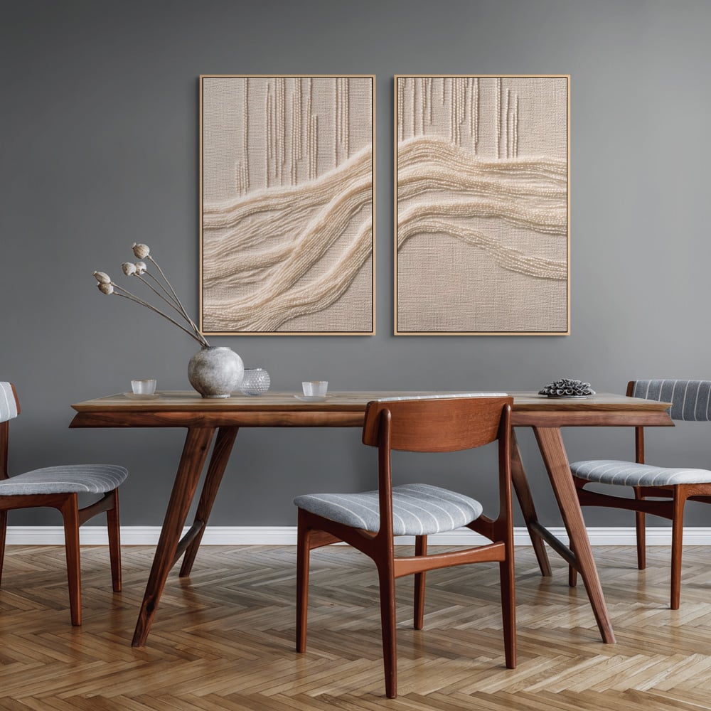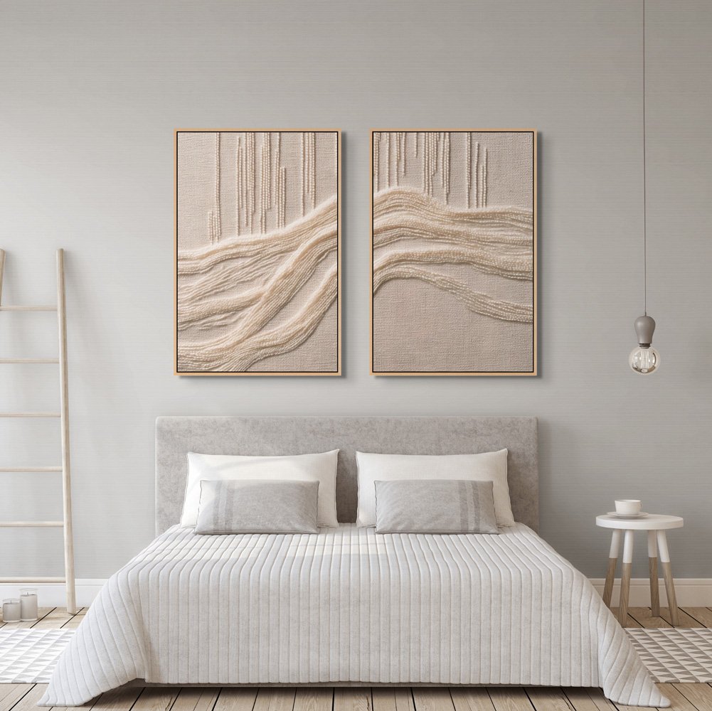 יצירת אמנות ממוסגרת במסגרת צפה אלגנטית, המעניקה ליצירה מראה מרחף ויוקרתי