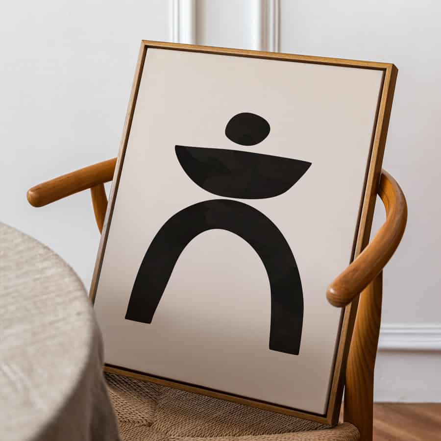 יצירת אמנות ממוסגרת במסגרת צפה אלגנטית, המעניקה ליצירה מראה מרחף ויוקרתי