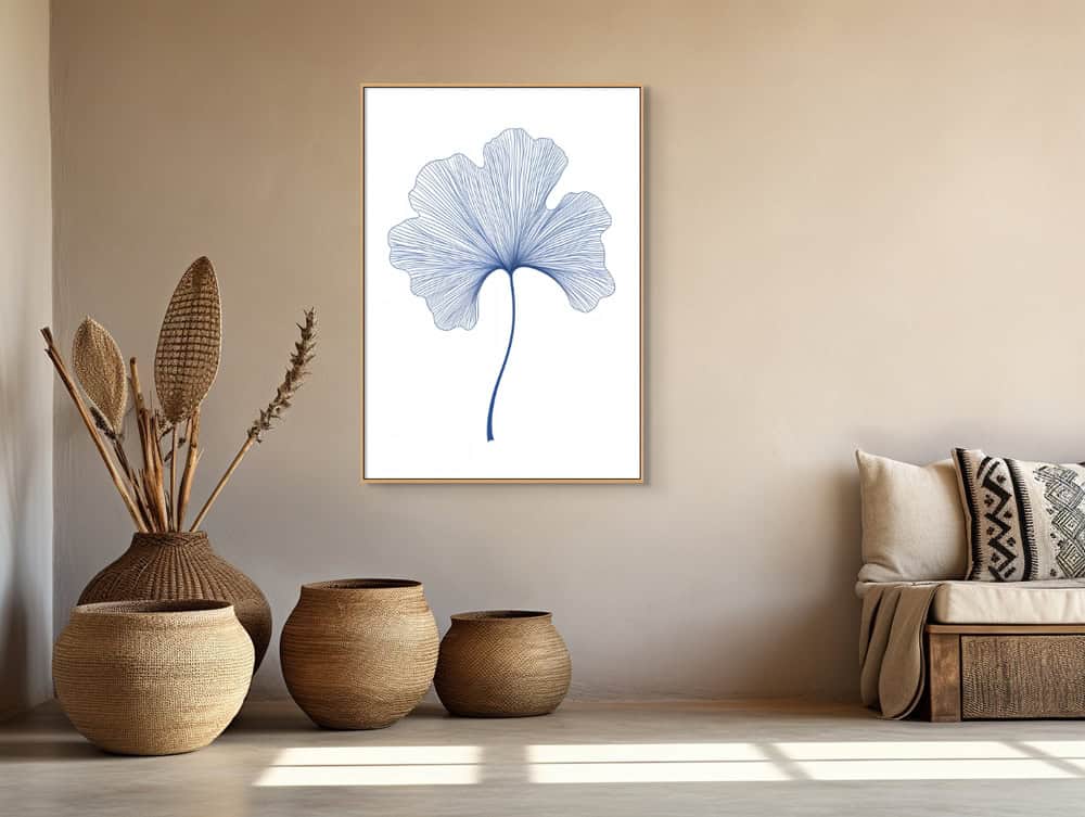 יצירת אמנות ממוסגרת במסגרת צפה אלגנטית, המעניקה ליצירה מראה מרחף ויוקרתי